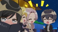 | "Let's discuss how we can improve our singing voice!" The members Rinku called together brought with them items that helps their singing. Airi also joins the fray, "Leave it to me!" | ||
